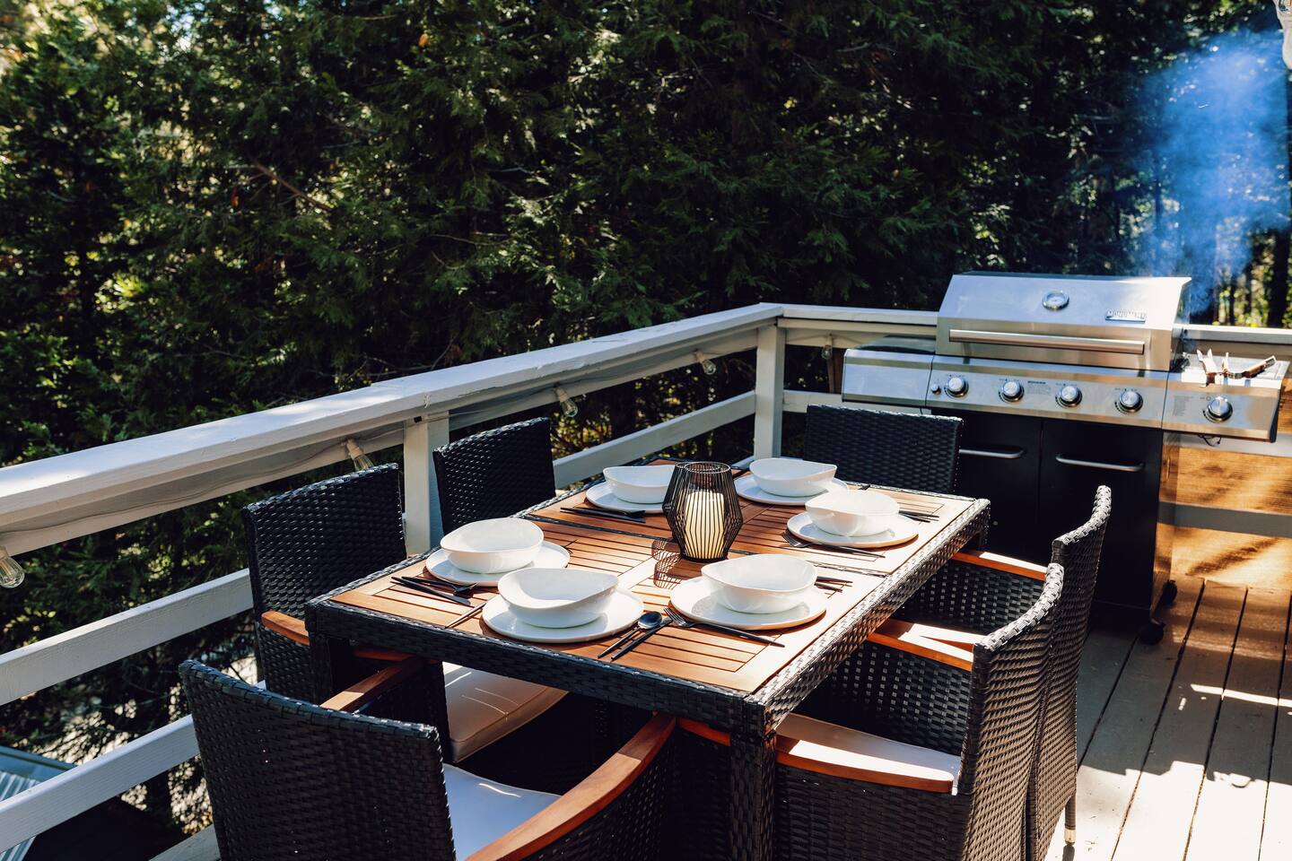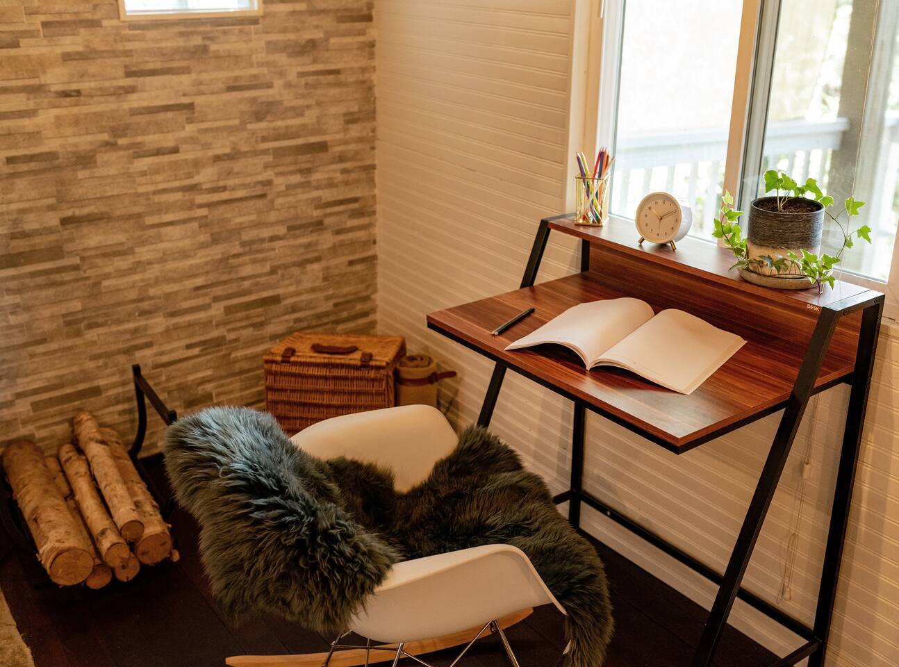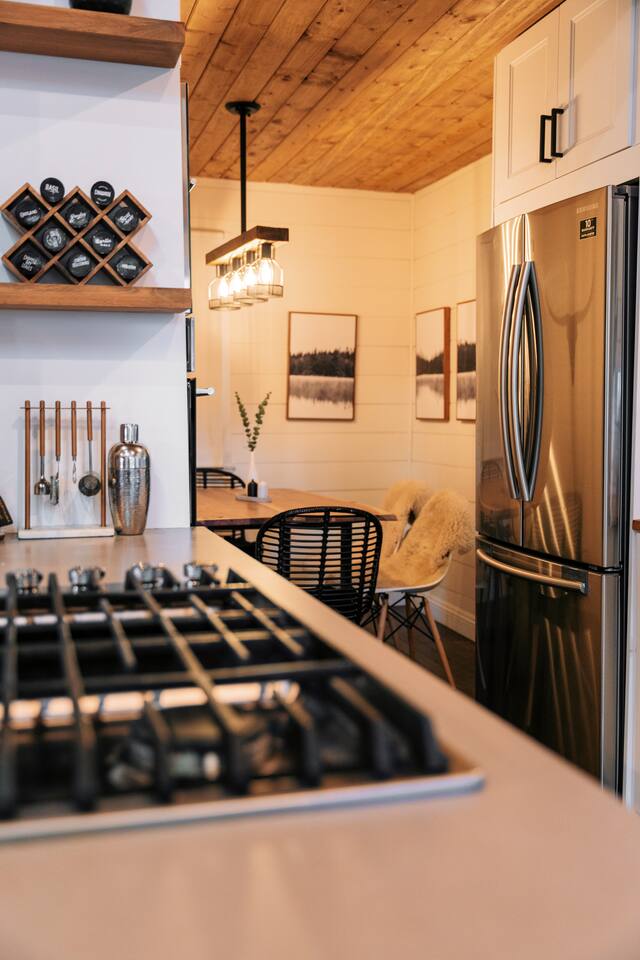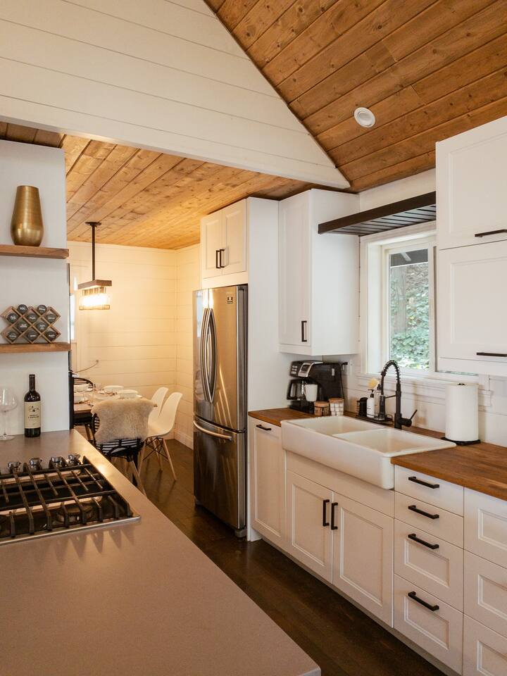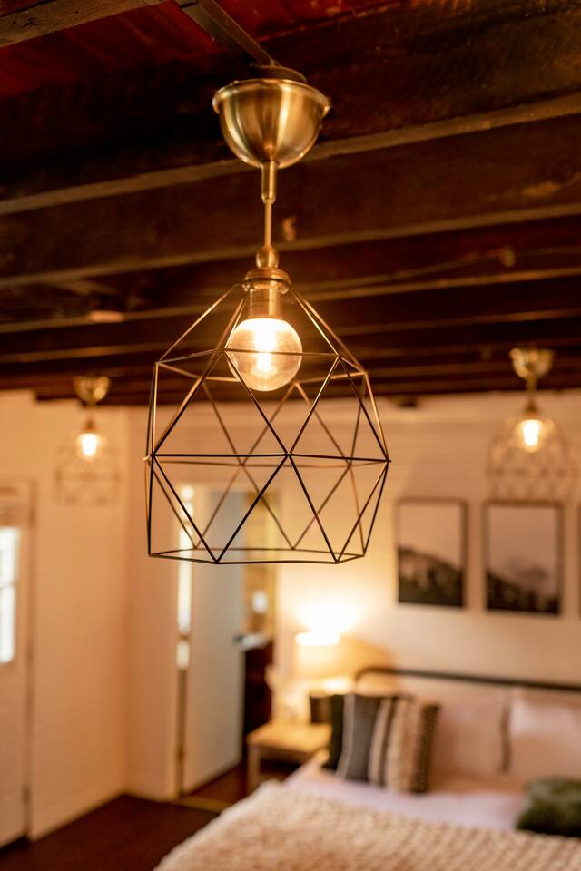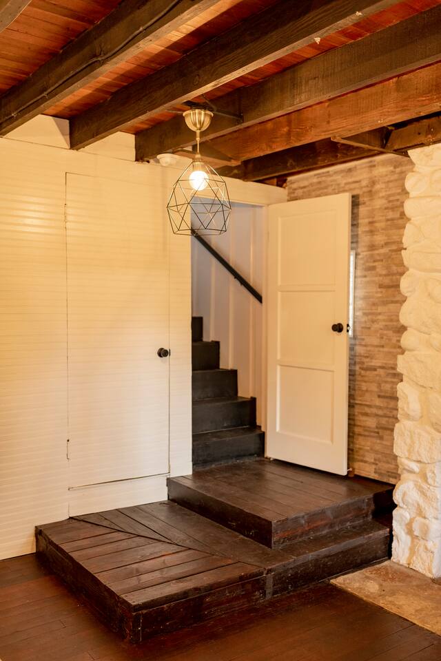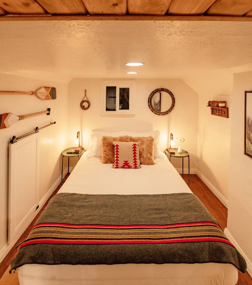 The open concept living room with vaulted knotty pine ceilings and an original masonry fireplace with a wood-burning stove set the mood for cozy and intimate evenings, sharing stories or playing games while listening to a few classic records. Make your way into the gourmet kitchen where you’ll feel inspired to create delicious meals together, or whip up your favorite cocktails to sip at the bar while someone else cooks! Fully equipped with a built-in stove top and a separate wall oven and microwave, the kitchen has all the accessories you might need. A full coffee & tea station is provided to start your mornings off right. The cozy and inviting Scandinavian-inspired dining room creates an intimate mood where we hope you’ll make wonderful memories with your favorite people. Step outside onto the main floor back deck where you’ll be immersed in the sounds of the forest while taking in the breathtaking view. A perfect place to connect with nature and recharge. Hang out by the chiminea and enjoy the fire vibe over a glass of wine, or grill and dine under the pines. Morning sunrises while enjoying a cup of coffee are one of the many highlights of the lodge. Experience ultimate relaxation in our luxurious private hot tub on the front patio. Nestled among the pines, this haven offers the perfect blend of serenity and indulgence. Unwind as the warm, bubbling waters melt away your cares, while you soak up the crisp mountain air and starlit skies. Whether you're seeking a romantic escape or a tranquil getaway, our hot tub oasis promises an unforgettable, rejuvenating experience amidst nature's splendor. Take your choice of 3 bedrooms. Head up to the loft for a camping-by-the-lake vibe with an open concept and queen-sized bed or enjoy the main level “wolf den” with a modern yet woodsy vibe, located next to the main level bathroom. Head downstairs to the primary suite with an abundance of space and a beautiful masonry stone fireplace with an electric log set for the ultimate mood. The room is equipped with a desk with a forest view, whether you're in need of a work station or want to stir up your creative juices. Cozy up in the king-sized bed, enjoy the privacy of your own back deck while taking in the fresh air, and relax in the large soaking tub in your en-suite bathroom which also includes a double vanity and spacious closet. For those warm summer days, there is an evaporative cooling unit in the dining room, a large ceiling fan in the living room, as well as a floor fan in each bedroom. Once winter arrives, the lodge is equipped with a new and efficient Rinnai wall unit in the master bedroom connected to a Nest thermostat that is capable of heating the entire house, however, there is also an additional wall heating unit on the main floor as well as the wood stove which heats the house up quickly. Firewood is provided for our guests. The lodge is fully set up with Alexa and smart plugs. Turning on inside and outside lights is as easy as a simple command. Start up the record player for an old-fashioned music experience or bluetooth to the sound bar to listen to your favorite tunes. All lights are on dimmers to make sure you are able to create that perfect mood. Check us out @littlewolflodge for more info and photography!